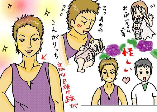 丸首のシャツを着ていたのか、日焼け跡がくっきりですた。ついつい目線がそこに。